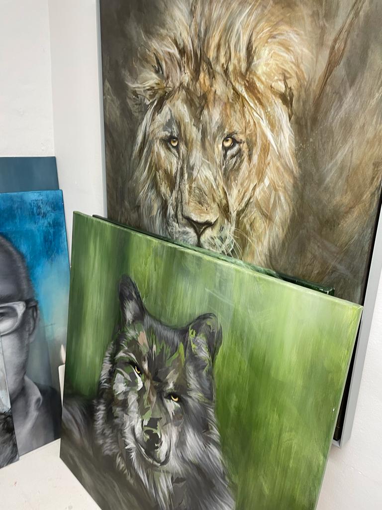 Atelierbesuch bei Joschua Gumpert, 26 in Hamburg-Eimsbüttel: Zum Künstler geht es durch den Hinterhof, dann eine steile Treppe hinauf in ein gemütliches Atelier, in dem neben seinen zahlreichen Werken entlang der Wände auch Platz für einen großen Schreibtisch ist. Denn Joschua Gumpert sitzt nicht nur vor der Staffelei: Mit seiner Organisation ONE PLANET setzt er sich für aktiven Klimaschutz ein. Das erfordert viel Zeit und eine straffe Struktur. Biodiversität, Ozeane, Energiewirtschaft, Tierwohl oder Klimaschutz – sein Themenspektrum ist vielfältig. Während des Malprozesses hört er Hörbücher um sich tiefer in wissenschaftliche und philosophische Themenkomplexe einzuarbeiten. Hier stellt sich die Frage: Wie passen diese Rollen zusammen? Sie harmonieren perfekt.